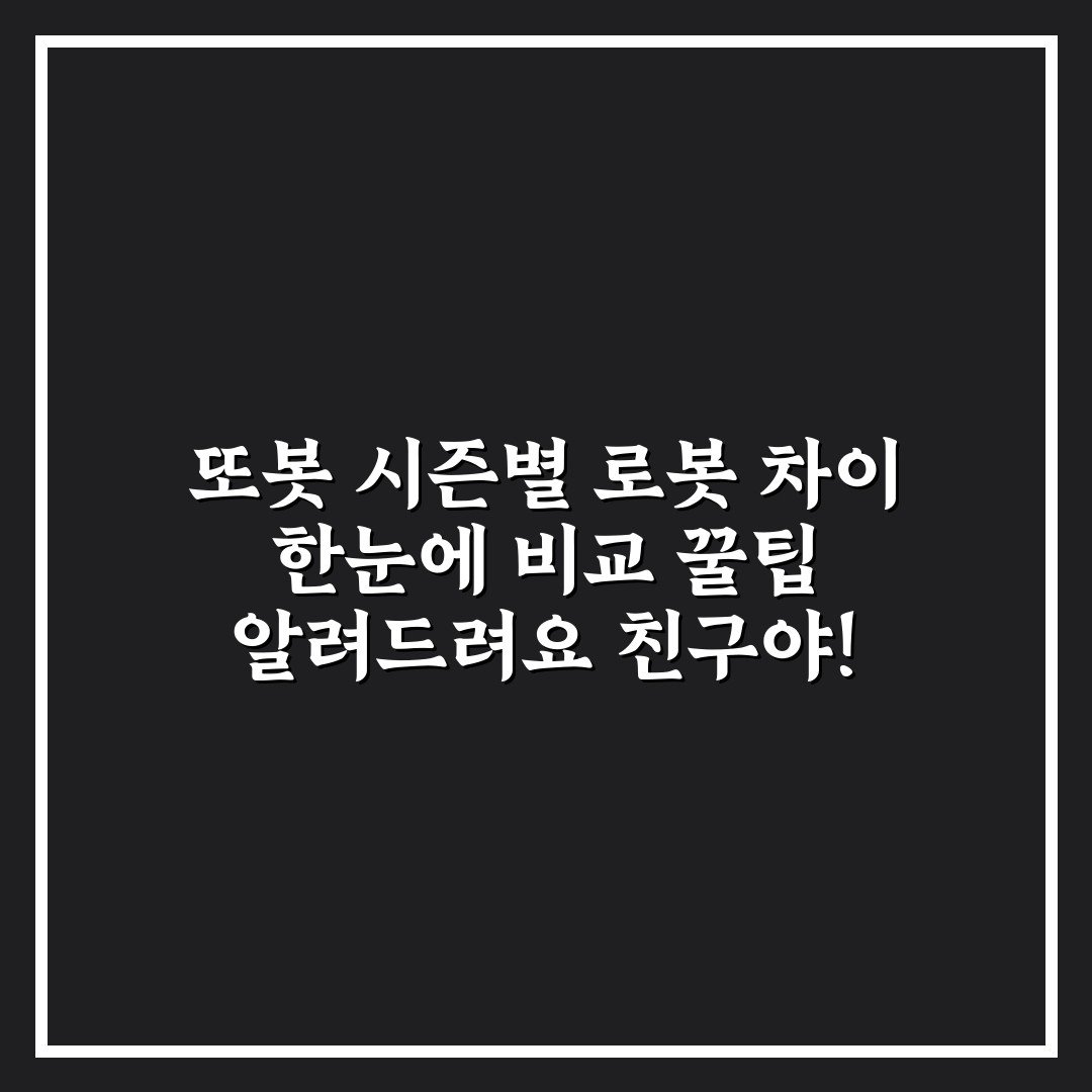 또봇 시즌별 로봇 차이 한눈에 비교 꿀팁 알려드려요 친구야! 2026년 04월 17일 by 주인장 또봇 시즌별 로봇 차이를 한눈에 비교해 쉽게 이해하는 꿀팁 완벽 정리! 친구와 함께 확인해보세요.